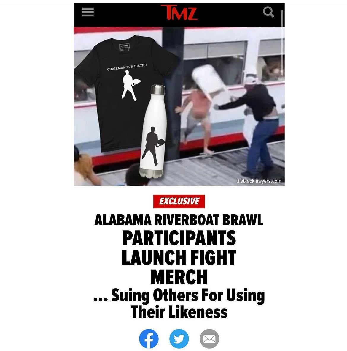 Thanks to TMZ and Complex magazine for featuring our newly launched OFFICIAL #AlabamaBrawl collection designs with Reggie Ray "The Chairman" and Tammie Howard "The Baptist" who showed courage that day. They have launched this collection in response to others profitting of their likeness without their permission. Please support the collection here!